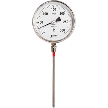 | Opcional | 1) Caja rellena de aceite de silicona (apta hasta 339 C máx.) 2) Contactos: SPST simple, normalmente abierto para cerrar al subir/bajar la temperatura (acción específica requerida) ajustable por sobre el rango entero, potencia 30 VA @ 230 V AC (dial de 100mm, solo para la entrada trasera) |